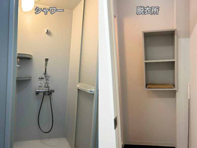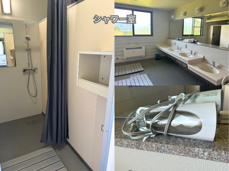 各サニタリー棟にあり、嬉しい脱衣所&棚付き&ドライヤー完備のシャワー室でした。