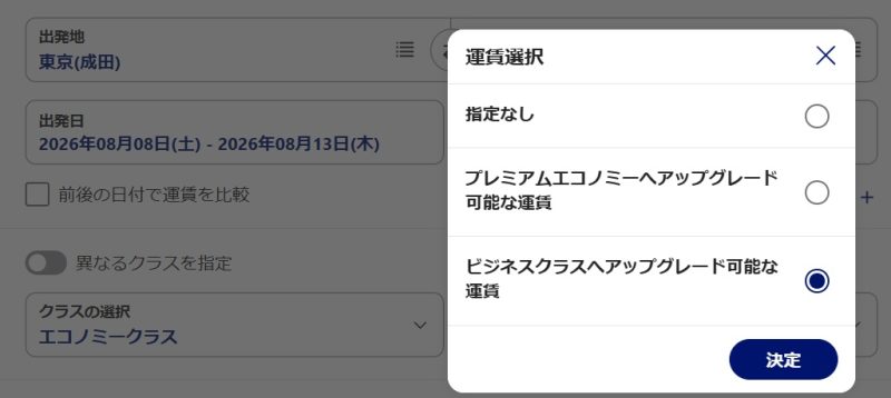 ただし、運賃オプションによっては、そもそもアップグレードが対象外のものもありますので、注意しましょう。