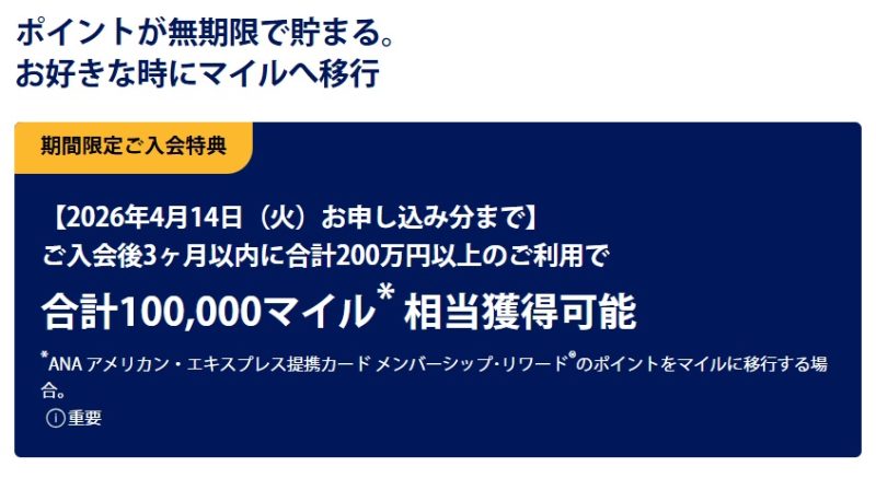 ANAアメックスゴールドの入会キャンペーン【2026年3月】