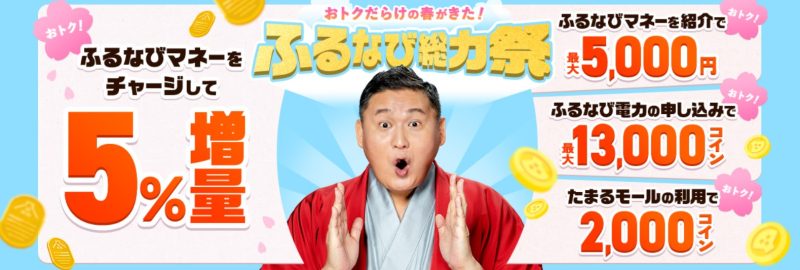 しかも、ふるなびでは、チャージしてからふるさと納税を行うようにすれば、5%増量されます。