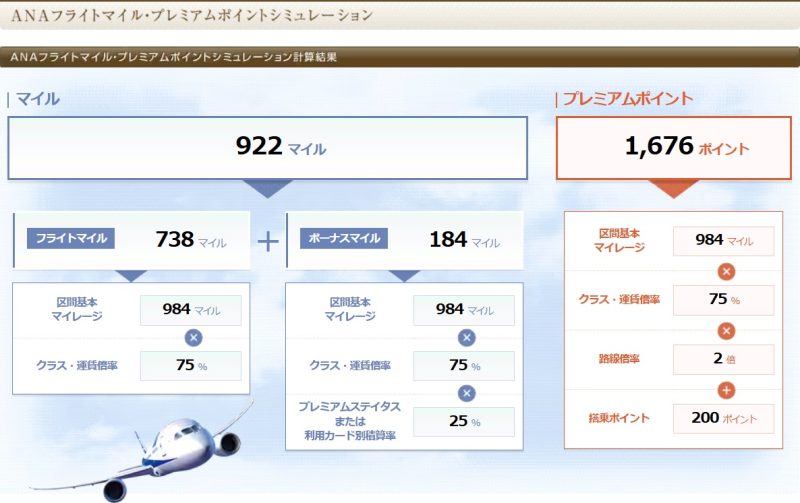 ボーナスマイル:区間基本マイレージ × クラス・運賃倍率 × 25%