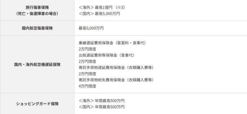 自動付帯で国内・海外の旅行保険が充実しているので、1枚所有しておく価値はあります。