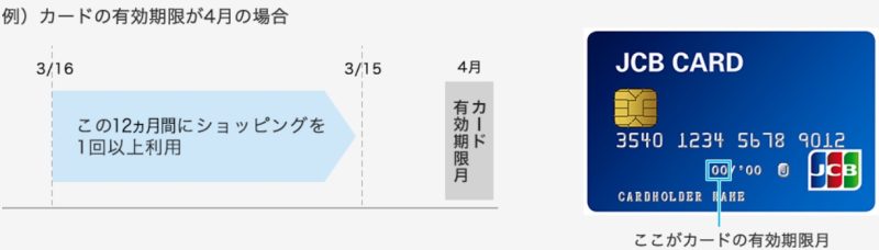 - カードの有効期限月の前月の15日から12ヵ月さかのぼった期間内にショッピングの利用があること